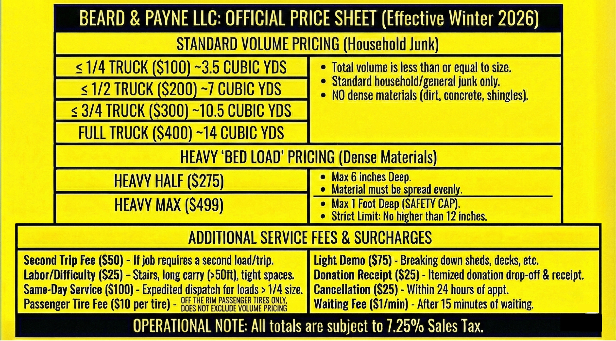 OTHER FEES INCLUDE: Freon Appliances $25 per unit (fridges, AC units), TVs and Monitors $15 per unit. DISCLAIMER: Passenger Tire fee is ADDED to volume pricing.